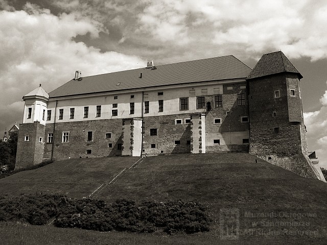 Docelowo na siedzibę Muzeum został przeznaczony Zamek, który po prawie 30 latach gruntownego remontu, Uchwałą Miejskiej Rady Narodowej w Sandomierzu z 25 czerwca 1986 roku, został przekazany w użytkowanie na czas nieokreślony Muzeum Okręgowemu w Sandomierzu. Po oddaniu w 2001 roku Kamienicy Oleśnickich i budynku na ulicy Katedralnej (2002 rok) oraz trzech sal ekspozycyjnych w ratuszu (2013 rok), Zamek stanowi naszą jedyną bazę lokalową. Znalazły tu swoje miejsce wystawy stałe oraz wystawy czasowe o różnorodnej tematyce, których organizacja jest bardzo ważną częścią naszej działalności merytorycznej. W sali rycerskiej na I piętrze zamku odbywają się konferencje naukowe, spotkania, itp., a także pełni ona funkcję sali koncertowej, teatralnej oraz jest miejscem imprez o charakterze okolicznościowym i społecznym. W zamku znajdują się również pomieszczenia magazynowe zbiorów, biblioteka muzealna, pracownie działów merytorycznych i pomieszczenia administracyjne.