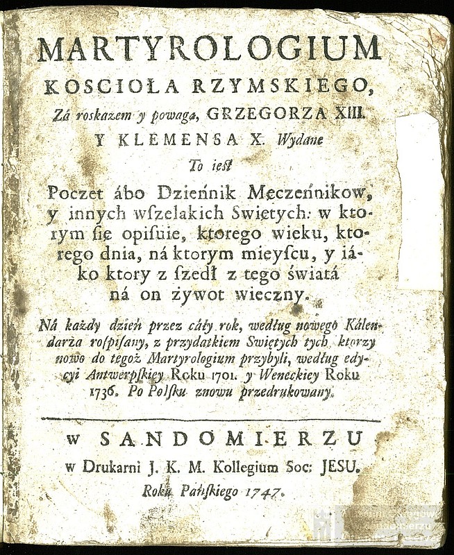 Biblioteka Muzeum Zamkowego w Sandomierzu posiada w swych zbiorach kolekcję kilkunastu XVIII-wiecznych starodruków, wytłoczonych przez działającą przy kolegium jezuitów drukarnię.